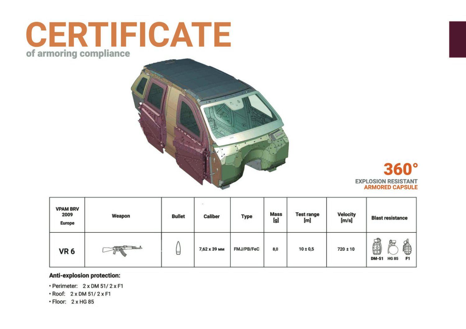 The luxury SUV recieved a certificate of armoring compliance