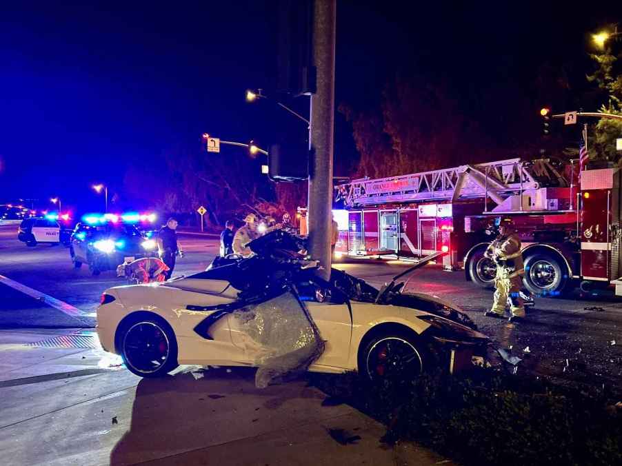 In the early hours of November 29, a high-speed crash rattled the quiet streets of Irvine, California. At 1:03 a.m., a car struck a traffic signal pole at the intersection of Modjeska and Still Night, a suburban area known for its neatly manicured landscapes and family-friendly atmosphere. The crash left the driver seriously injured but alive, and first responders took some time extricating him from the mangled Corvette C8. What’s so unusual about the incident is just how the pole tore into the sports car: it virtually split the front cabin in half.