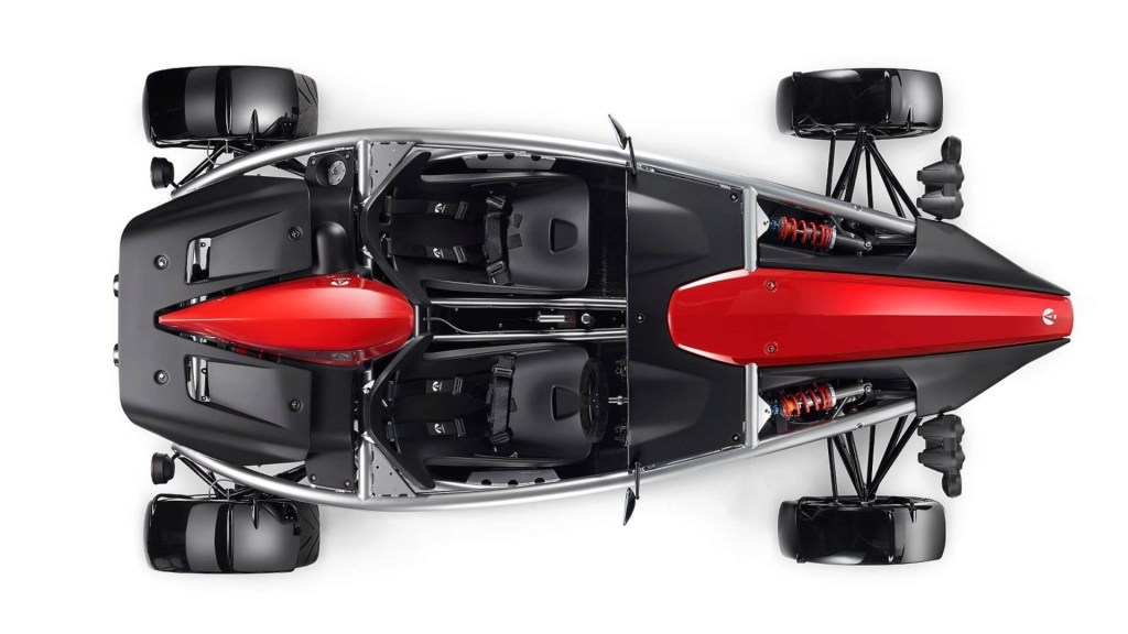 We won’t go over all the specifics, because it’s really just every guy’s childhood racecar fantasy come to life. What you see is what you get. And what you get is a 0-60 time of 2.8 seconds in something that’s bigger than a motorcycle and lighter than a first-generation Mazda Miata.