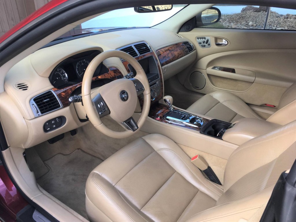 The 2008 Jaguar XK coupe currently listed on Cars and Bids is a well-equipped example. It comes with the upgraded Alpine stereo and 6-disc CD changer as well as a lifetime Sirius subscription. Plus, it has the optional power-adjustable heated seats, leather dashboard, and heated steering wheel.
