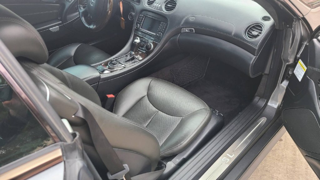 This 2005 Mercedes-Benz SL600 isn’t cosmetically perfect. It has some scuffs and scratches and some interior wear. There’s also a small tear in one of the bolsters. However, it has just over 101,800 miles.