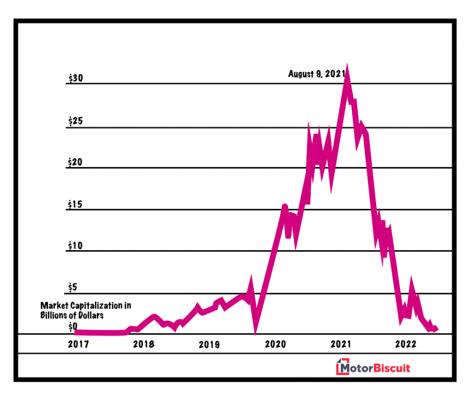 Investors are fleeing like crazy with no end in sight. From a market capitalization of almost $31 billion in August 2021, it has crashed to under $1 billion now. And falling. So far this month alone the stock value has tanked 13 percent, and we’re only to December 7. In November, it dropped 43 percent.