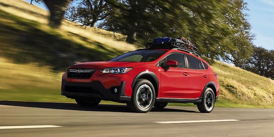 The Crosstrek starts at $23,645. It uses a 2.0-liter four-cylinder engine to make 152 horsepower and 145 lb-ft of torque. The subcompact SUV achieves 28 miles per gallon in the city and 33 miles per gallon on the highway. Its base model comes with a six-speed manual transmission.