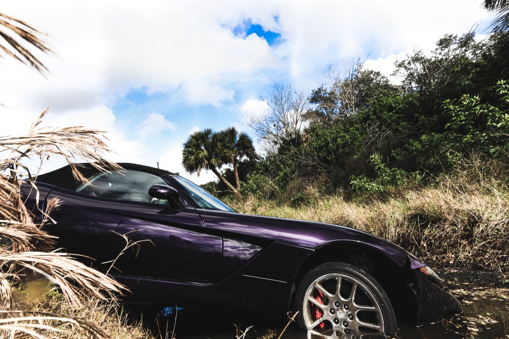 Luckily for us, my fiance was unharmed in the accident and was even able to drive the car the very short distance home. For now, it will sit wilting in the driveway while we continue to rebuild yet another salvaged Lotus Elise. As we got the car home and began inspecting the damage, a single, lone crawfish climbed out from the front bumper, probably just as shocked by his new location as we were by our Dodge Viper hitting the ditch. Or perhaps we could simply rename it: the Dodge Water Mocassin.