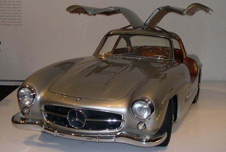 The 1955 Mercedes-Benz 300SL Gullwing’s tubular space frame chassis necessitated the inclusion of upward-opening gullwing doors. Mercedes also included a 215 horsepower that enabled the 300SL to reach 160 mph. Another notable feature was the direct fuel injection system, a timely technological advancement that improved fuel delivery efficiency and engine yield.
