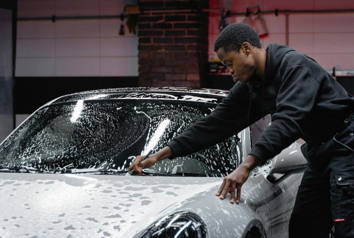 When detailing the exterior, dish soaps, detergents, and rags are your worst enemies. You’ll need a gentle car wash soap, a microfiber cloth, and warm water. Wash the body in sections, starting from the top, and rinse with clean water. Immediately use a second microfiber cloth, compressed air, leaf blower, or distilled white vinegar to prevent water spots.