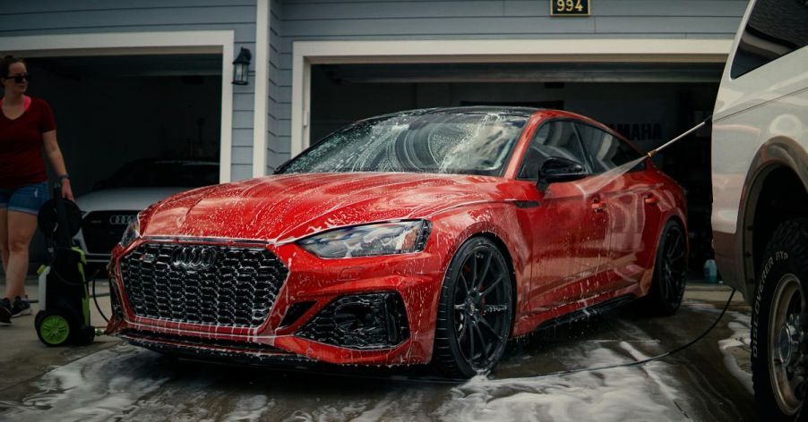 When detailing the exterior, dish soaps, detergents, and rags are your worst enemies. You’ll need a gentle car wash soap, a microfiber cloth, and warm water. Wash the body in sections, starting from the top, and rinse with clean water. Immediately use a second microfiber cloth, compressed air, leaf blower, or distilled white vinegar to prevent water spots.