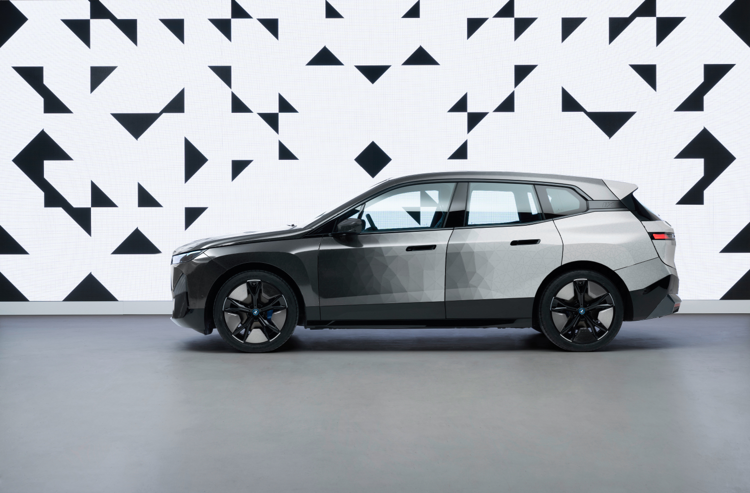 The BMW iX electric SUV can be seen changing colors instantly in the viral videos going around. According to Business Wire, the paint uses something called E Ink. The BMW iX uses something called E Ink Prism, which makes the EV a “digital paper-wrapped concept car.” The E Ink Prism is a design film developed to offer a fully-customizable color or pattern.
