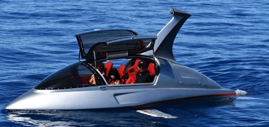Anything described as Corvette-like and both submersible and flies gets our attention real quick. This marine vessel is the submersible “Jet Shark.” It’s an unusual four-seat shark-like personal watercraft that, well, skims on or under water and also leaps above the water’s surface.