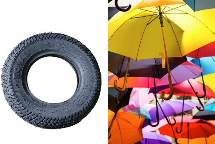When you have no easy-to-reach place to store your umbrellas, you can make one using a tire. Simply poke some holes large enough for an umbrella to pass through, and voila! You have a unique holder for your umbrellas and walking sticks.
