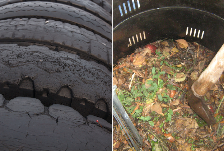 Old tires can also be used to create compact and efficient compost bins. Stack several tires and fill them with organic waste to create a durable and contained system for composting. The tires help retain heat, speeding up the decomposition process while keeping the compost area tidy.