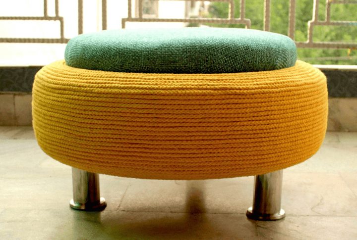 Change an old tire into a chic ottoman for your living room or patio. Wrap the tire in fabric, rope, or sisal and add a cushioned top, and you have yourself a comfortable and stylish piece of furniture. These DIY tire ottomans are durable, unique, and a great way to showcase your creativity.