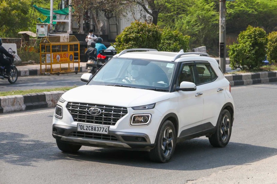 The Venue is a subcompact crossover, smaller than a Toyota RAV4 and closer in size to a hatchback. It weighs just 2,600 pounds, making it one of the lightest SUVs on the market. That’s a problem.