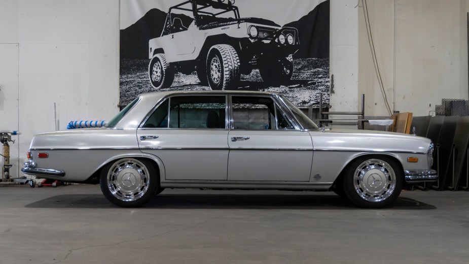 However, Icon 4×4’s custom Mercedes-Benz is anything but a reasonable car. Instead, the custom 1971 300SEL 6.3 ditches the comparably anemic classic Mercedes mill in favor of a supercharged LS9 V8. The LS9 is courtesy of a C6-generation Corvette ZR1, and Jalopnik says it puts down about 470 horsepower in a detuned state compared to the ZR1’s 638 crank-horsepower. Of course, the mighty Corvette heart is more than enough to motivate the Mercedes-Benz with muscle car urgency.