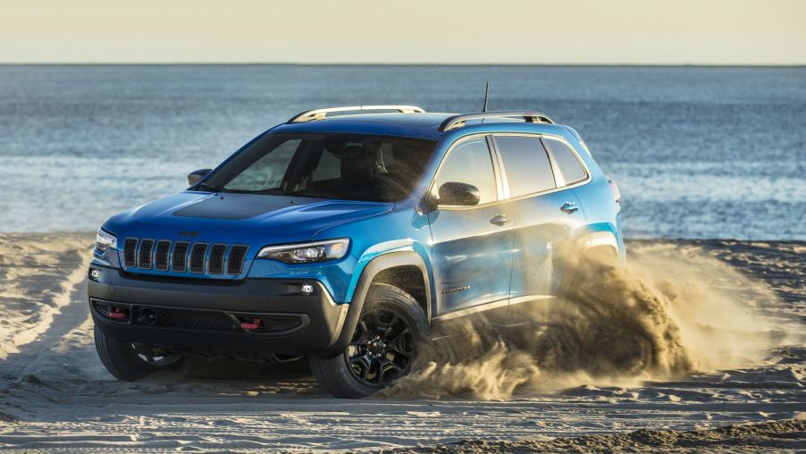 However, the Cherokee also is available with a unique off-roading suspension, 19-inch wheels, wheel-arch extensions, a locking rear differential, upgraded engine cooling, and a rear tow hook.