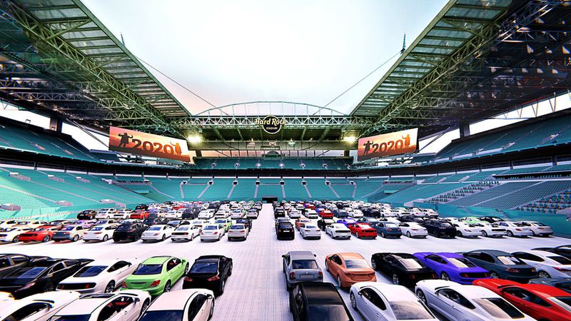 Named, The Outdoor Theaters at Hard Rock, the plan encompasses converting Hard Rock Stadium into a drive-in movie theater. The stadium has enough space to have 230 cars on the field. A smaller venue in the south plaza will also be converted for smaller groups to be entertained by other outdoor big screens.