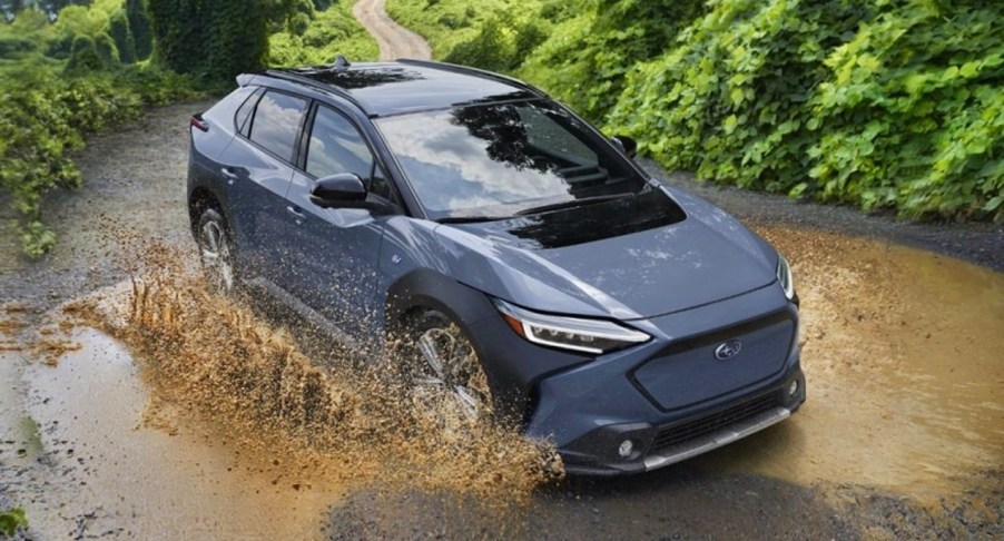 The Subaru Solterra is the first electric SUV that’s geared toward off-roading. The Solterra has been marketed as an electric SUV that’s capable of tackling trails and natural obstacles. It is unqiue and thus is unlikely to compete with the Toyota bZ4X despite sharing a platform with the EV.