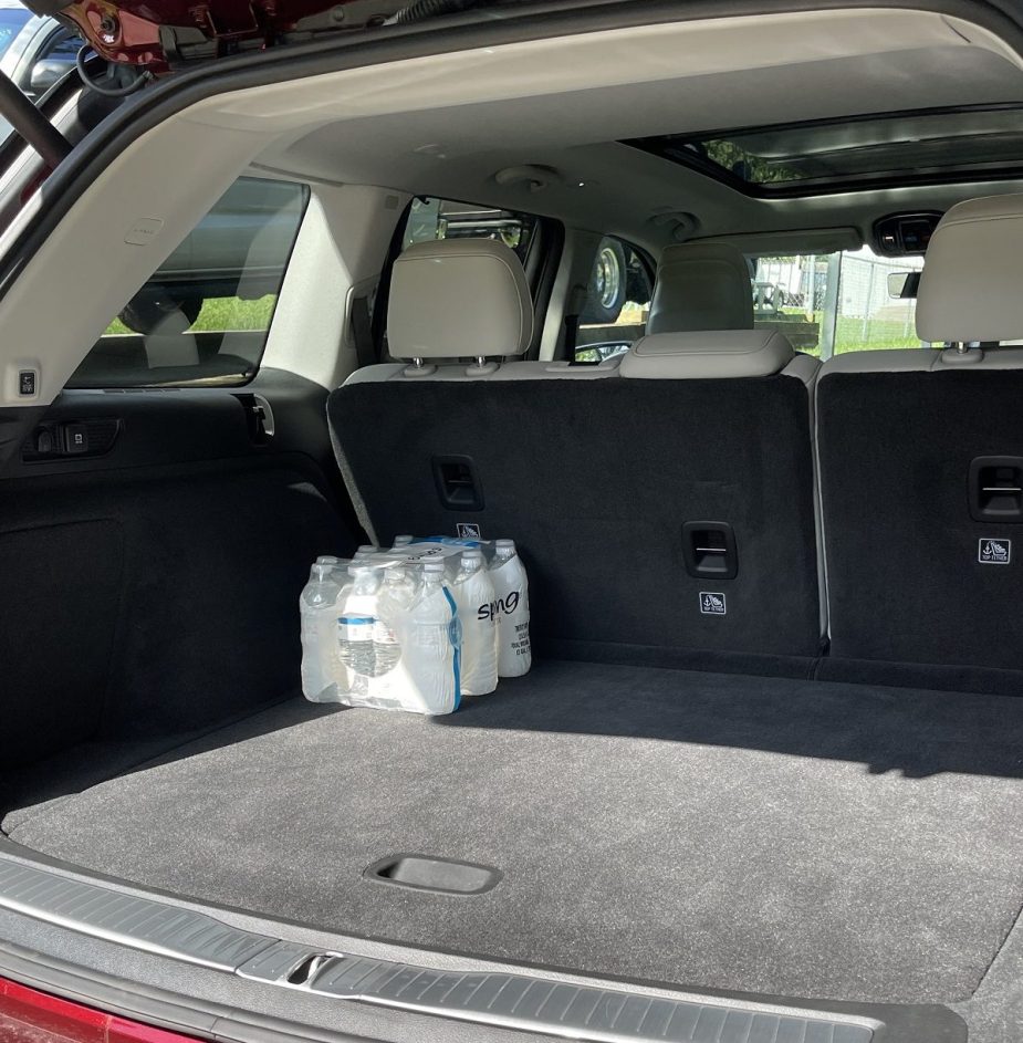 This isn’t the Grand Cherokee L, with its third row, but there is enough room for one. According to Edmunds, you can access 37.7 cubic feet behind the rear seats and up to 70.8 cubes total. Plus, the center console is deep, and the door pockets are large.
