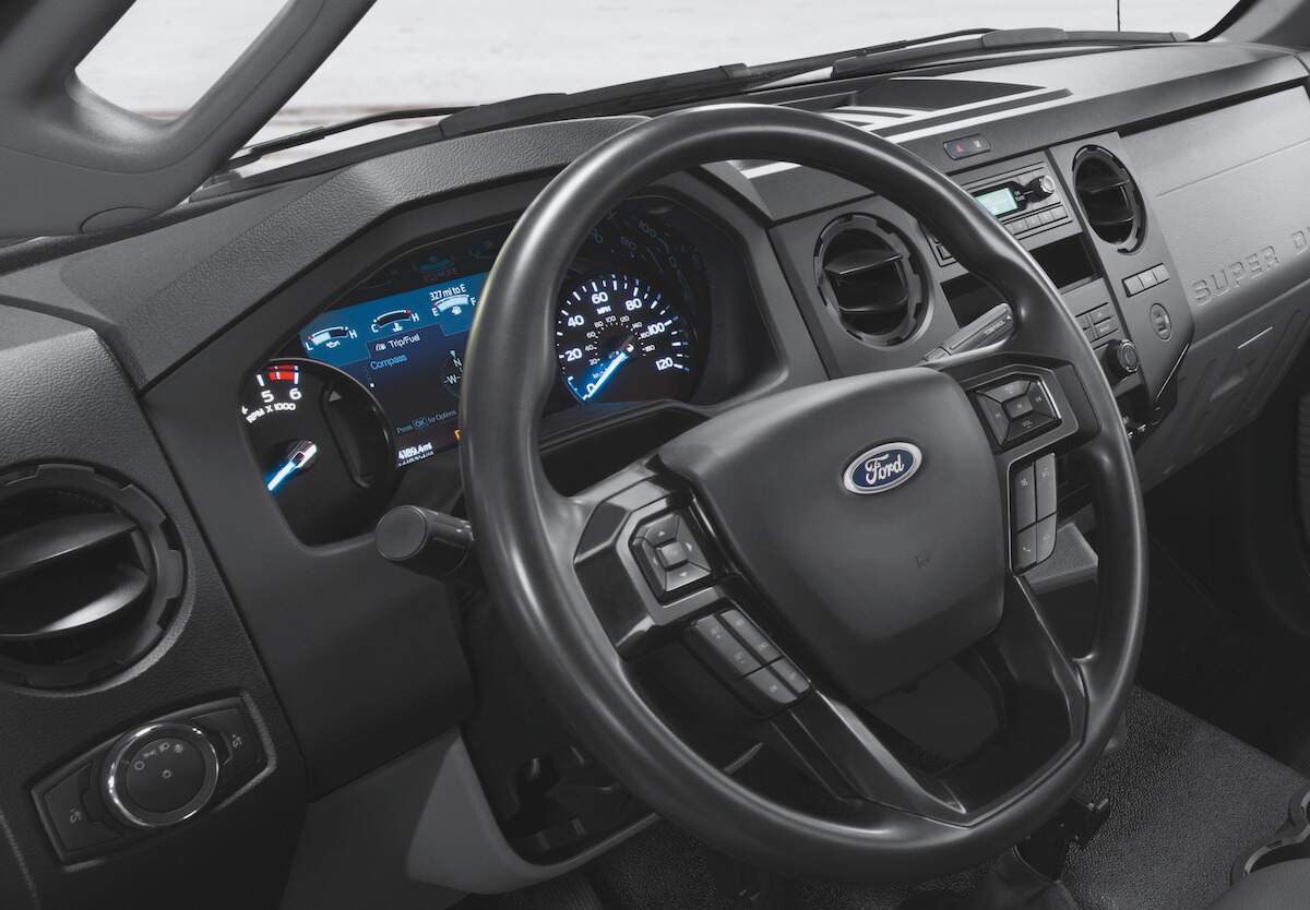 As for comfort and convenience features, the truck doesn’t have much compared to the consumer-favorite F-150. The F-750 has air conditioning, steering wheel-mounted controls, and an AM/FM radio.