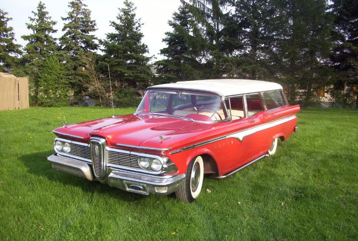 It’s not easy to find an Edsel Villager, as this car was produced in limited numbers between 1958 and 1960. It’s the intermedia trim level, offered in six and nine-passenger styles. This model shows a replacement of the boomerang-shaped taillights that caused problems in the 1958 models, as it confused drivers.