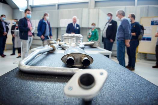 Fumes flow from the exhaust manifold through the exhaust pipe to a catalytic converter. The inside of the catalytic converter contains various specially selected metals that react with some of the poisons within the exhaust gasses, reducing the toxicity by up to 90%.