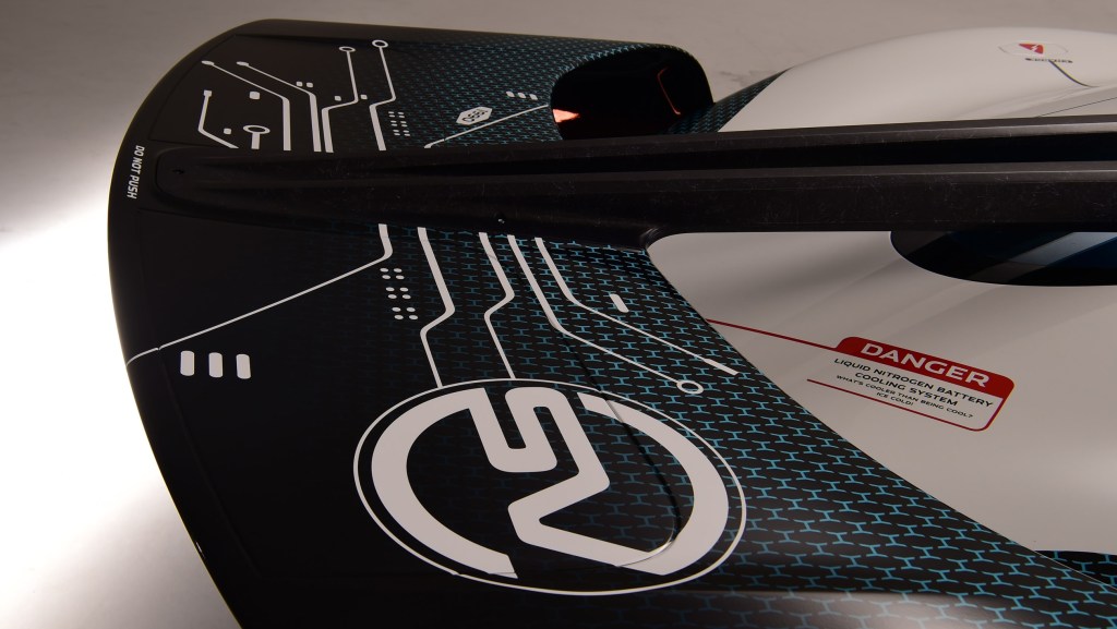 Though there is talk this could actually be raced, we doubt it will be. However, as an EV race car, there were some nods to the possibility. For instance, the liquid nitrogen tank that handles battery cooling can easily be changed out in a pit situation.