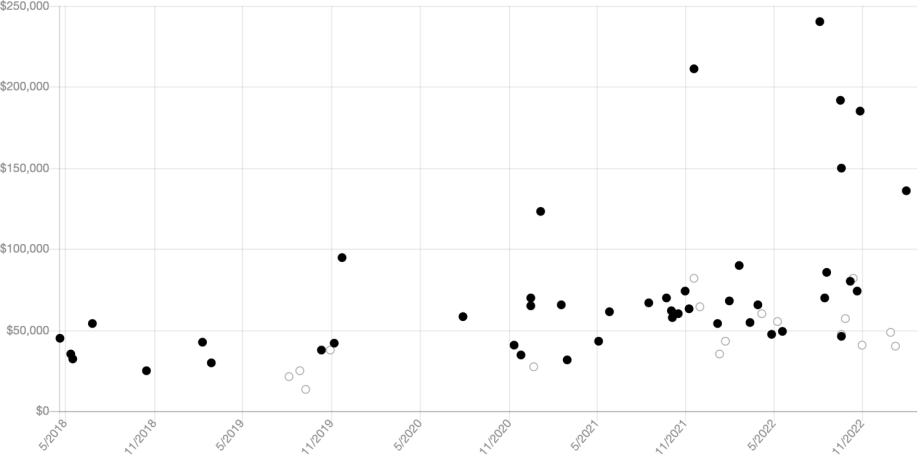 Some of the most recent sales for a 1970 Bronco at the end of January 2023 include one for $136,000. Another version reached $48,500, but the reserve was not met. Plenty of examples, up near $200,000, sold at the end of the year, but it seems sales are slowing in 2023.