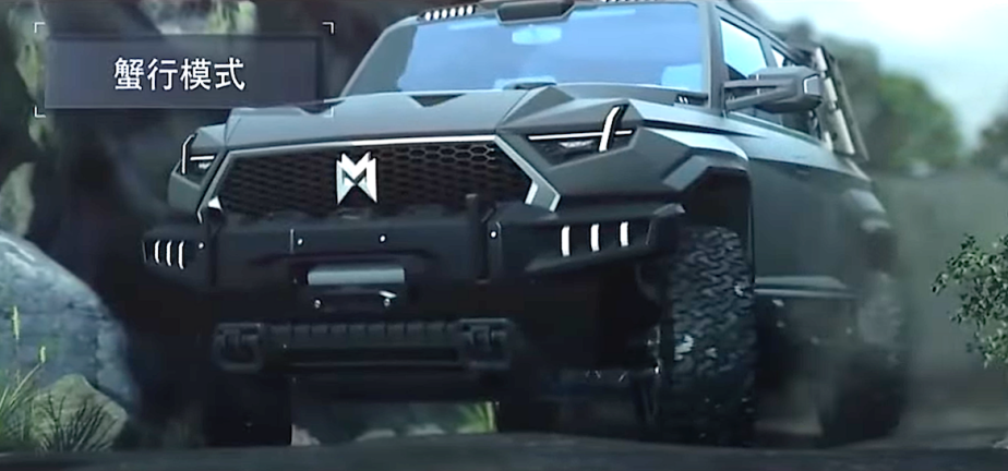 The M-Terrain comes in two varieties, pickup, and SUV. It utilizes Dongfeng’s EV skateboard platform, with a 140 kWh battery powering a quad-motor all-wheel drive layout. This system also simulates locking axles and center diff. The drivetrain supposedly has 1,073 hp, slightly more than the Hummer’s 1,000 hp.