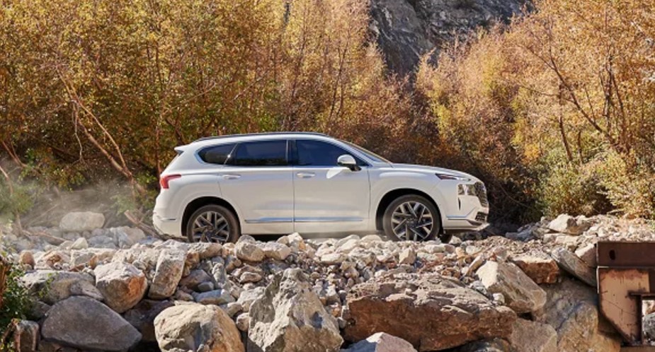 Although it looks like a rugged SUV, you probably should not off-road the Hyundai Santa Fe. This vehicle does offer available all-wheel drive so that you can handle some light trail work. If you are looking for an SUV that is good for things like camping, the Santa Fe is certainly up to the task.