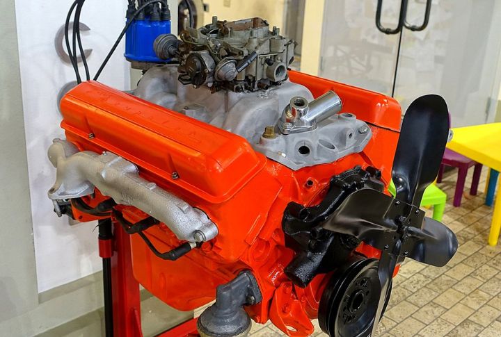 In 1970, Chevrolet fitted the Corvette with a 454ci LS6 engine featuring a 454 cubic-inch displacement (7.4 liters). The LS6 engine delivered optimum capacity due to its large bore and stroke. Other high-performance components included a forged steel crankshaft, forged aluminum pistons, and a high-lift camshaft. Its four-barrel Holley carburetor efficiently atomized the fuel in the air, yielding 450 horsepower and 500 lb-ft of torque.
