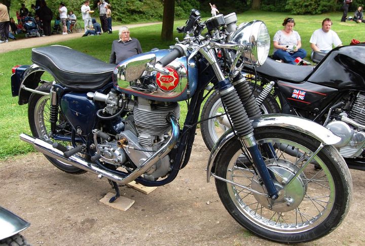 BSA named Gold Star after Wal Handley’s achievement of reaching 107.57mph on a lap, earning him a gold pin. Despite not being the fastest of its time, the Gold Star, with a 34 horsepower 496CC engine, was popular among British police forces.