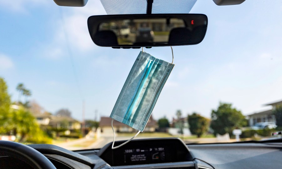 Wherever you keep a facemask in your car these days, it’s probably best to have one handy. Just remember not to hang one from your rearview mirror, especially if you live in a state where it could result in a ticket or, worse, obstruct your visibility and cause an accident.