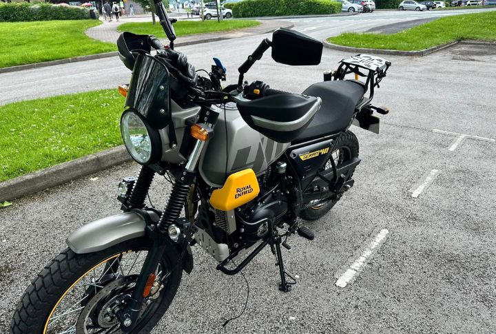 Despite its complexity, the most notable feature is its independent color display, which also functions as a sat nav system’s direction display. For shorter riders, it lowers the seat height and makes the motorcycle more manageable by running a 17-inch front rim to the 21-inch rim of the Himalayan, the bike it is based on.
