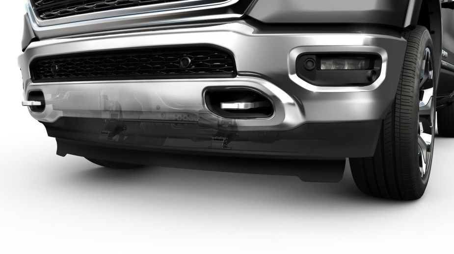 The Ram 1500’s air ride suspension option replaces the truck’s front and rear coil springs with air springs. The truck can use its onboard compressor to increase or decrease its ride height. This unlocks a variety of useful features.