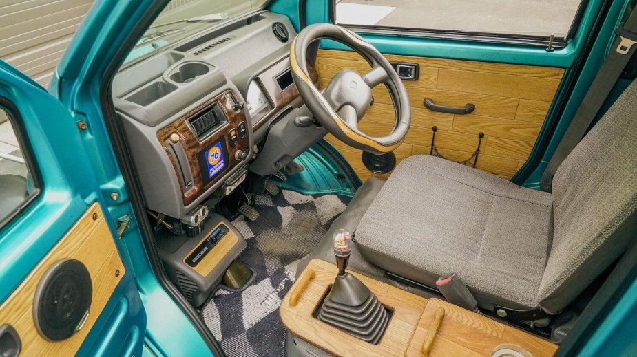 So I was scrolling Cars & Bids the other day when I saw a cute little imported micro truck: a 1996 Daihatsu Midget II. I dug its front-mounted spare tiny and tiny bed. But as I scrolled through the pictures, I noticed something odd: no passenger seat. This truck is so tiny that the driver sits in the center of the cab.