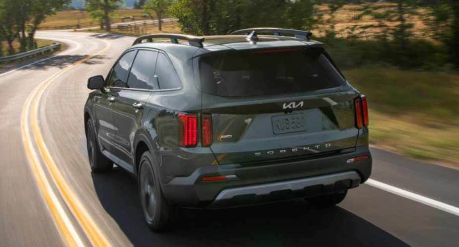 Car and Driver recommends the Kia Sorento EX. The Sorento EX starts at $35,490. It comes standard with a turbocharged 2.5-liter four-cylinder engine that makes 281 horsepower. The midsize SUV achieves 22 miles per gallon in the city and 29 miles per gallon on the highway.