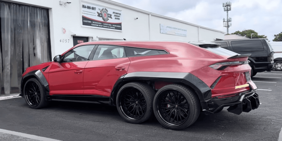 When we first saw the mockup of the Lamborghini Urus six-wheel monstrosity on several forums, we thought it was somebody’s brain fart to destroy a perfectly good Urus. We never thought it would see completion. But now, more images of the Lambo Urus are surfacing, showing we were wrong. Now, we had to find out what the story is behind this obviously expensive and outrageous Urus six-wheel project.