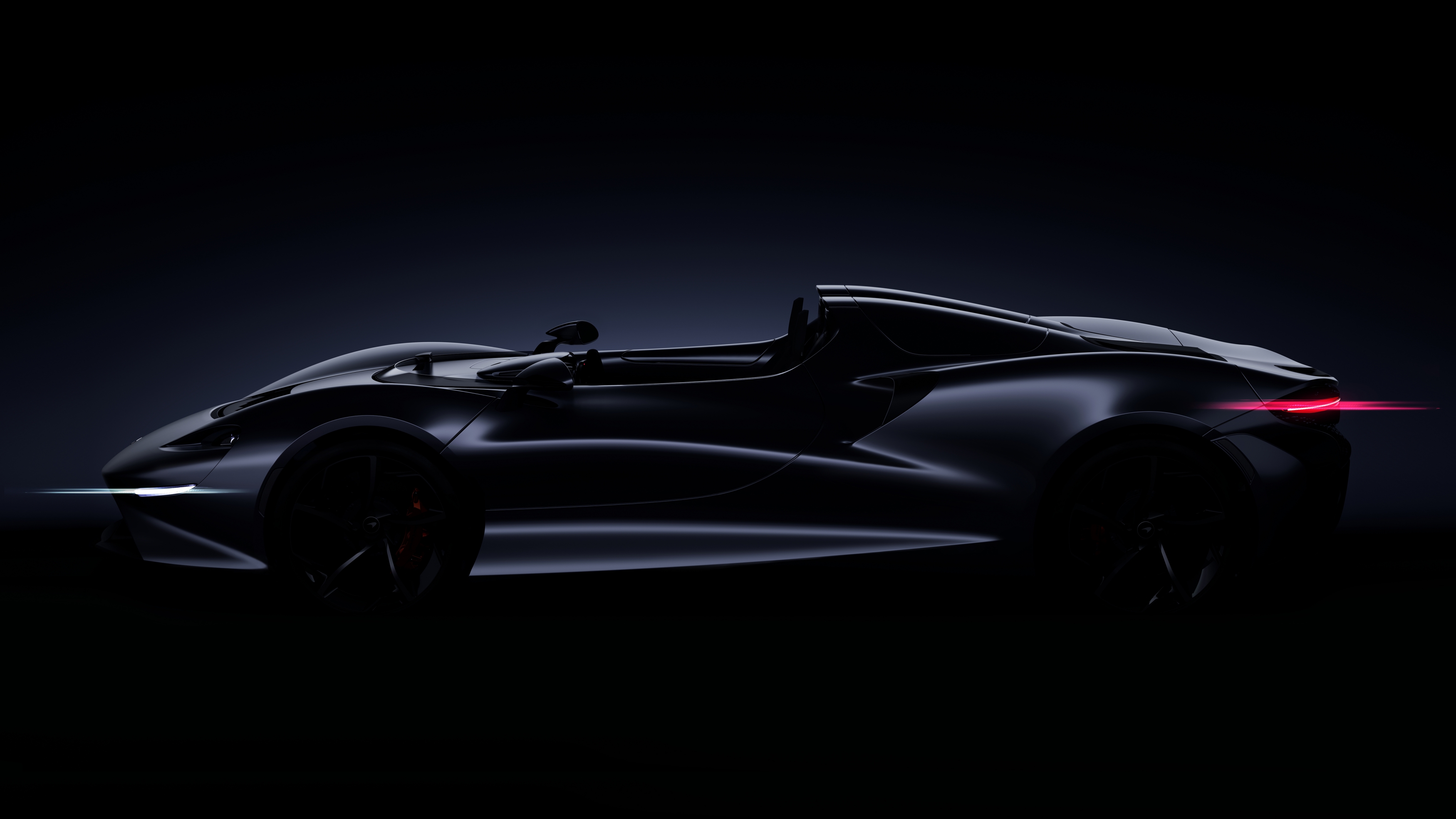 The single image available offers no visible cockpit windscreen protection, which looks similar to Ferrari’s Monza SP1 and SP2. Ferrari says these windscreen-less models have a patented “virtual windscreen” which directs wind away from the driver. Whether McLaren has a similar configuration is unknown, as is a name for this new speedster.