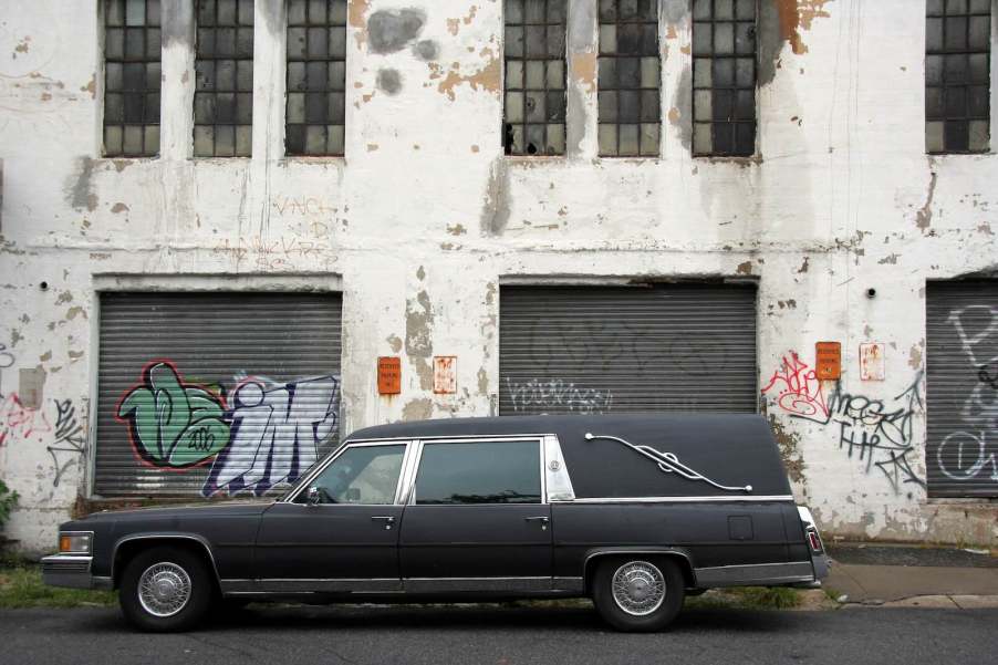Maybe the funeral home director’s hearse needed an oil change and figured, Hey, the deceased won’t mind a quick pit stop. Maybe they’re so used to carting around cadavers that they forgot mechanics aren’t. Or maybe someone completely forgot Uncle Jim was back there. Either way, that’s weird.