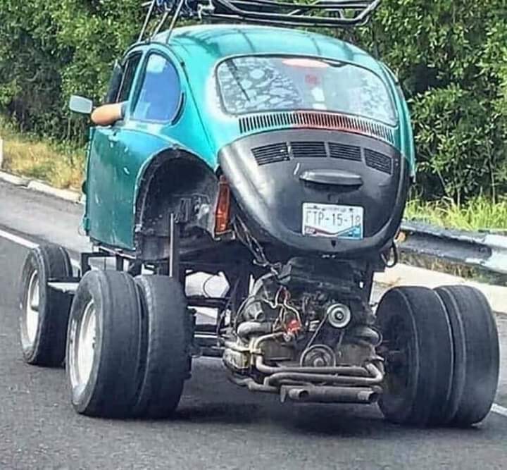 this is a simple way of getting more power. Stitch a front-wheel-drive Sube to the back of a bug, tie the throttles together, and hang on. Aesthetically, we’d rather not comment, but at least is it painted the same color which makes this a deluxe freak.