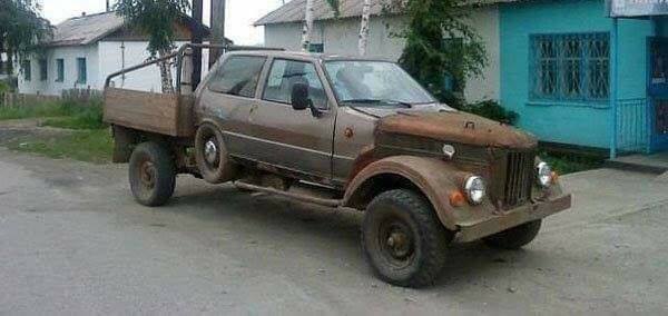 This looks to be a mishmosh of cab-over front, pickup box, and then bed. Again, we feel it is ingenuity that combines crap lying around and assembling them in a practical, cheap, and freakish way. Honestly, when you divorce yourself from how it looks, how could you build a more practical hauler than this?