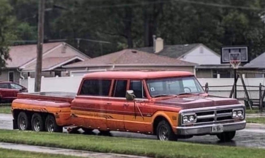 This is from a previous Freak Show Friday but we thought it tied in well with the theme of this week’s examples. It’s a Cadillac Eldorado front combined with a car hauler rear. Since it is front-wheel-drive the builder didn’t have to mess with a rear end, driveshaft, and trans. And 500 ci of a hauling engine can handle a ton or more.