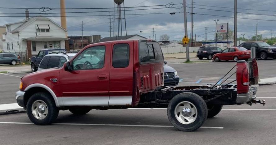 We’re not sure what the hell is going on here. Maybe it’s the owner establishing where his or her design elements need to be incorporated. Or not. We just get the feeling that something glorious is going to be fabb’d between the cab and rear corners. If you’re a freak then you can imagine something set in between the cab and bed corners. Show us your ideas.