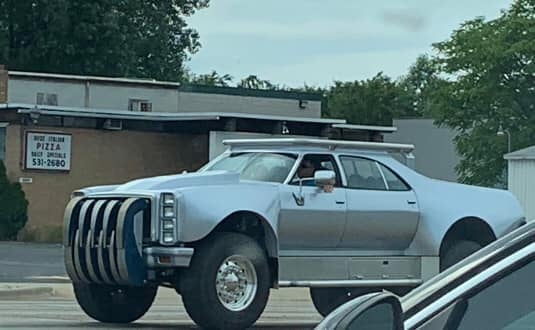 We think this is a Fiat Panda or Uno. You know, one of those Euro crapboxes. But really, does it matter? Rather than putting the spare on the back like most every other 4×4, this brainiac made the decision to stab it into the side. Maybe the window was broken and he was too cheap to buy new glass? So he used the tire to fill the hole? Sort of a two-for-one modification. Again, we’re seeing fairly good execution but horrible judgment.
