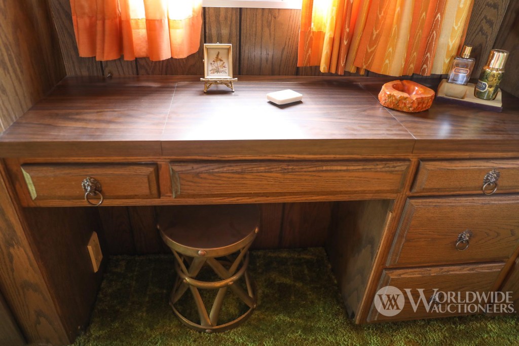 This example also comes with the original furnishings, which are all the size of furnishings for houses. It includes matching chairs and tables. Nothing from this period was as luxurious for the traveler as the Camelot Cruiser.