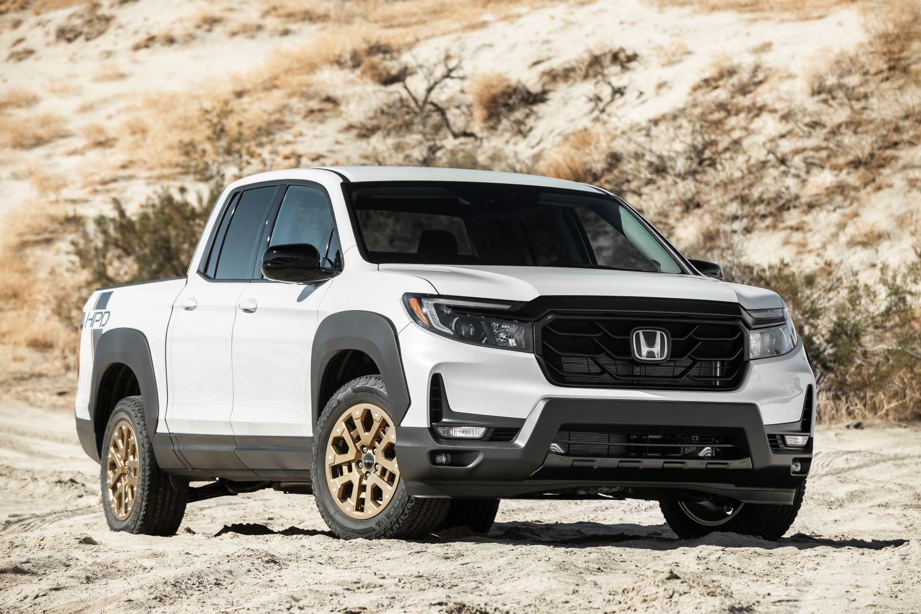 Package choices abound with an HPD Black Package that includes black alloy wheels, fender flares, an HPD front grille and emblem, and a sticker package. Honda says, “these bold accessories highlight the rugged capabilities and challenging spirit of the Ridgeline.” The add-on price is $2,800, and if you prefer bronze, that is available as well.