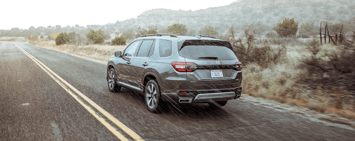 The most off-road-ready version of the Pilot is the TrailSport, starting at $48,800. It has exclusive 18-inch wheels with all-terrain tires, an off-road suspension system, skid plates, a TrailWatch camera system, standard AWD, and synthetic leather seats with orange stitching.