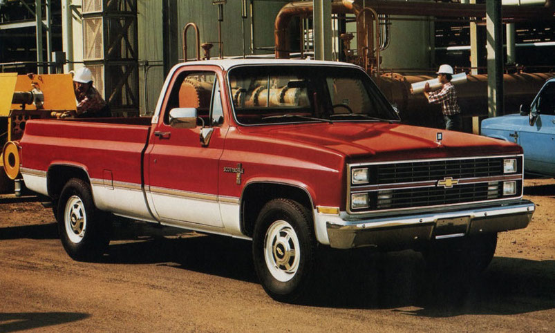 While the Ford trucks changed little except for grilles and interior appointments, the Chevy received a facelift in 1981. The nose was lowered and reworked in wind tunnel testing for better aerodynamics. Weight was also reduced. All of this in an effort to increase gas mileage. Also new in late 1981 was a 700R4 automatic transmission that featured an overdrive, replacing the 400 Turbo Hydramatic three-speed automatic.