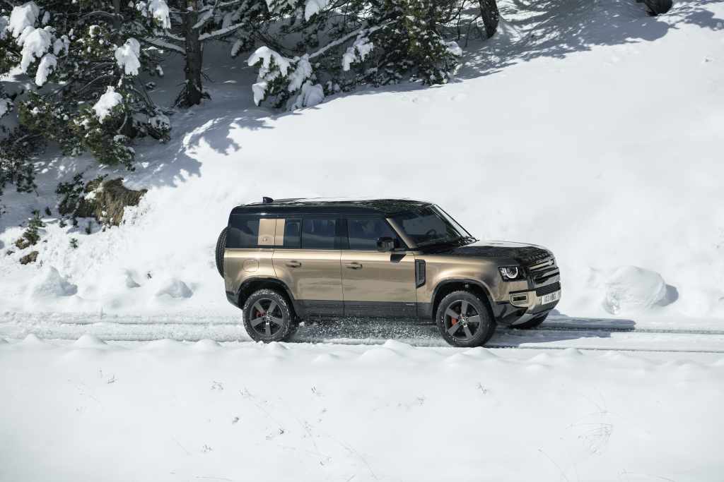 A 38-degree approach angle, 40-degree departure angle, and 31-degree break-over angle are the Defender’s off-road specs. The Defender can easily trudge through three-feet of standing water.