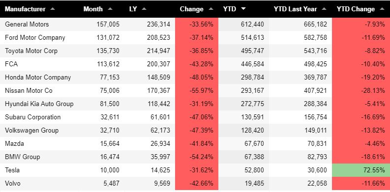 Last month’s sales figures for Nissan were weak as well. According to Goodcarbadcar.net, Nissan’s sales dropped 55.97% when compared to the same month in the previous year. This was the largest drop of all manufacturers, although drops in sales were consistent with all manufacturers. Keep in mind that the full effects of manufacturers shutting down production to deal with COVID-19 affected the tail end of March for the most part. April is something everybody is still trying to figure out.